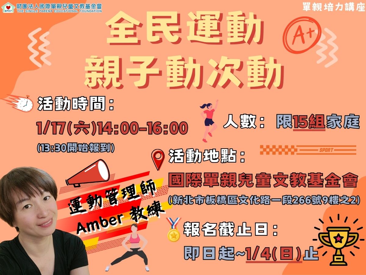 1/17(六)單親培力講座-全民運動 親子動次動