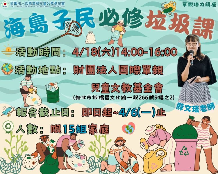 4/18(六)單親培力講座-海島子民必修垃圾課